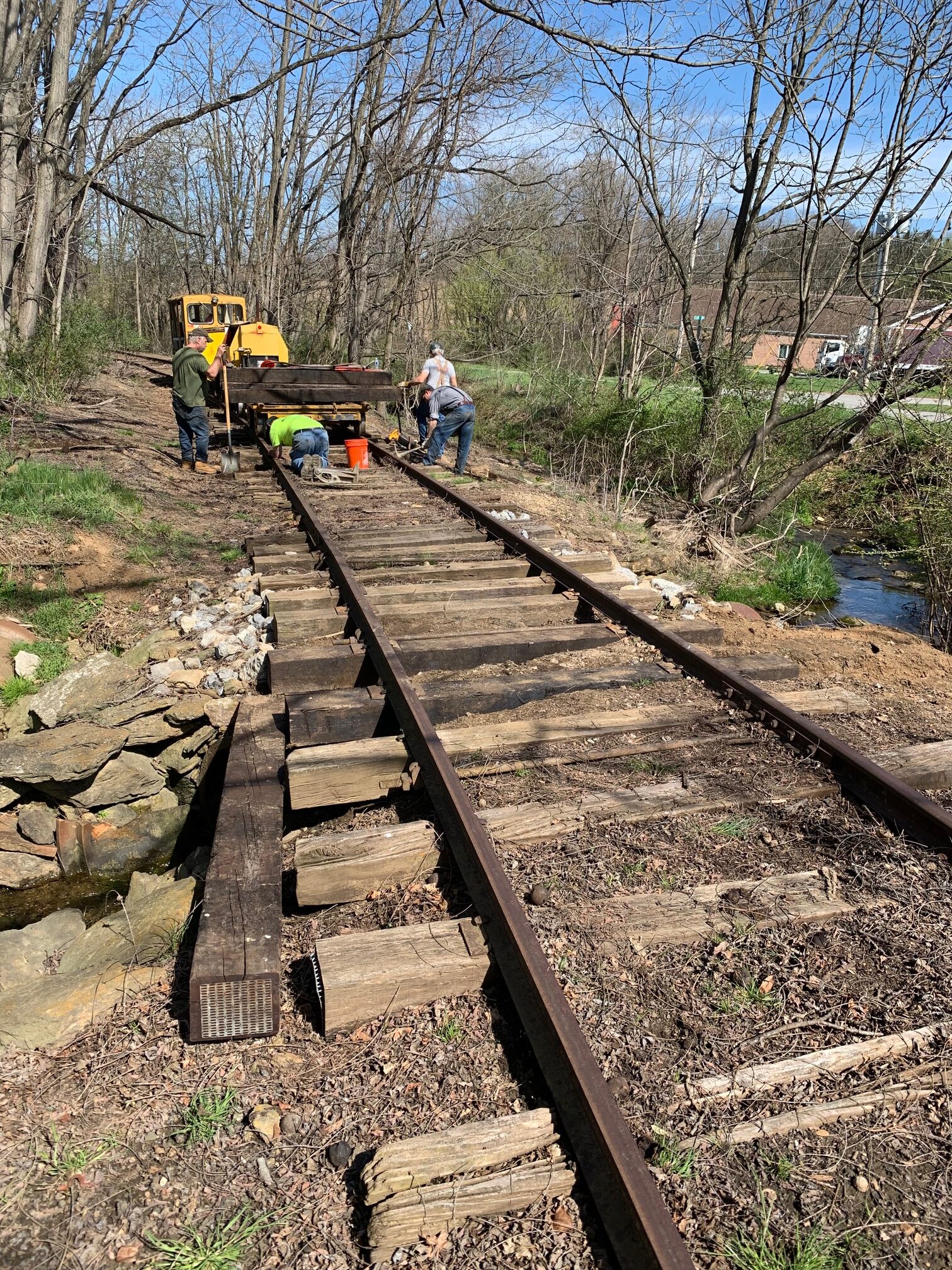 We had a good crew on Friday the 10 th and got a lot done on a brilliant sunny Spring day, including removing a fallen tree, cleaning out a clogged culvert and fixing some gauge problems and replacing broken joint bars.